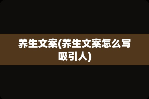3、美容养生的精美句子文案【篇一】 千法万法人人找,养生还是古法好。 健康长寿不花钱,按摩吐纳勿懒闲。 趋世之士,驰竞浮华,不固根本,忘躯殉物,危若冰谷。