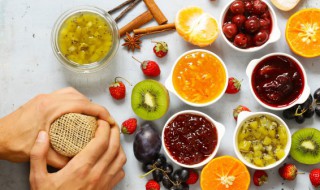 10、提前将玻璃罐用沸水煮过,控干水分。将煮好的果酱趁热倒入瓶中,拧紧瓶盖后倒扣放置,这样可以在瓶内形成真空,便于保存。