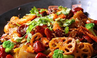 5、锅中剩余少量油,把火调小,下入除豆瓣酱以外的所有调料,炒出香味后放豆瓣酱,加少量开水。煮开后把过油后的所有食材一齐倒入,拌匀,起锅前淋少许香油即可。