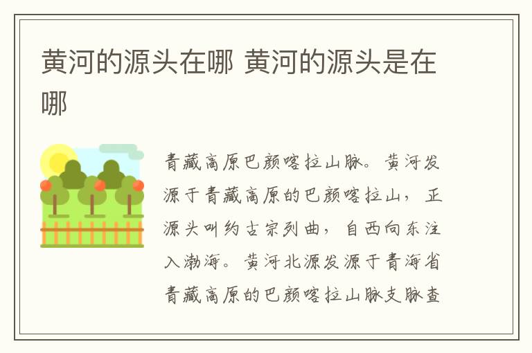 黄河发源于青海省青藏高原的巴颜喀拉山脉查哈西拉山的扎曲,黄河全长约5464公里,流经青海、四川、甘肃、宁夏、内蒙古、山西、陕西、河南、山东等9省、自治区,在山东省垦利县注入渤海。