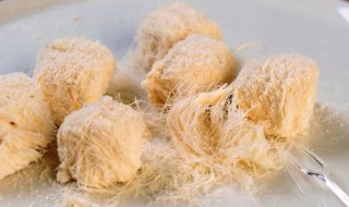 10、烤一段时间拿出来翻个面再烤,等到熟透后就做好龙须酥了。