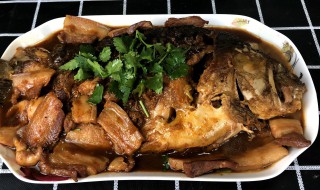 3、放入生抽、适量老抽上色,料酒锅边淋入去腥,放两勺黄豆酱,放入两勺自制剁椒酱、然后再放入两勺白糖提鲜、盐一勺,再放入凉水水量要多一点,然后盖上锅盖大火烧开,中小火慢炖三十分钟,汤汁收的差不多时,再放入青红椒烧制断生即可装盘。