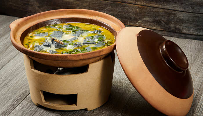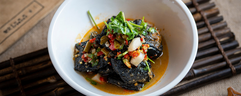 黑豆腐的吃法跟白豆腐差不多,煎、炒、烹、炸、炖都可以。准备黑豆腐,龙利鱼,老汤。把黑豆腐切成块,龙利鱼切成厚块略腌制,锅烧热放少许油,将腌制好的鱼块裹上面粉,中火煎至两面呈浅金黄色,捞出备用,再将黑豆腐略煎一下。