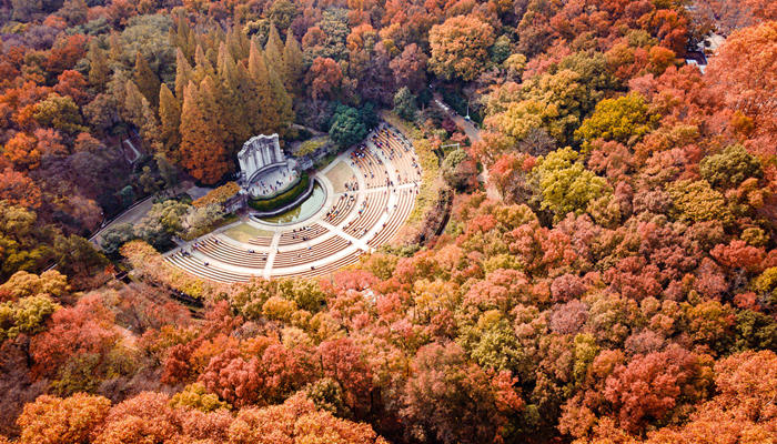 3、中山陵:位于江苏省南京市东郊钟山风景名胜区内,紫金山东峰茅山的南麓。钟山古称金陵山,汉代开始称钟山,东晋时开始称紫金山,紫金山共有三座东西并列的山峰。主峰为北高峰,其余分别为西为天堡山和东为茅山,中山陵便坐落于此。
