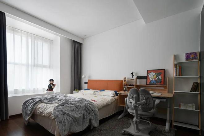 橙色、绿色及木色的搭配,使房间内充满阳光和朝气。活泼的色彩、个性的手办展示,打造一个独属男孩子的肆意奔放的空间。