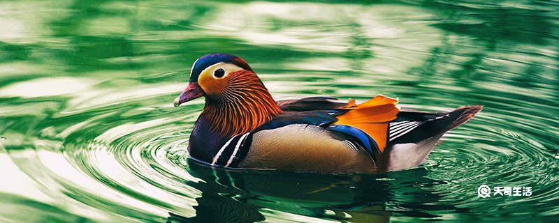 3、外形不同:鸳鸯身体长38~45厘米,雄鸳鸯的嘴是红色的,脚是橙黄色的,羽毛颜色鲜艳而华丽,头部具有冠羽,雌鸳鸯的嘴是黑色的,脚是橙黄色的,头部和整个上身颜色是灰褐色的,眼周是白色的;而鸭子身体长50~60厘米,雄鸭尾巴羽毛中央有4枚雄性羽毛,颜色是黑色的并向上卷曲如钩状,颈下有一个白色圈环,雌鸭全身羽毛颜色呈棕褐色。